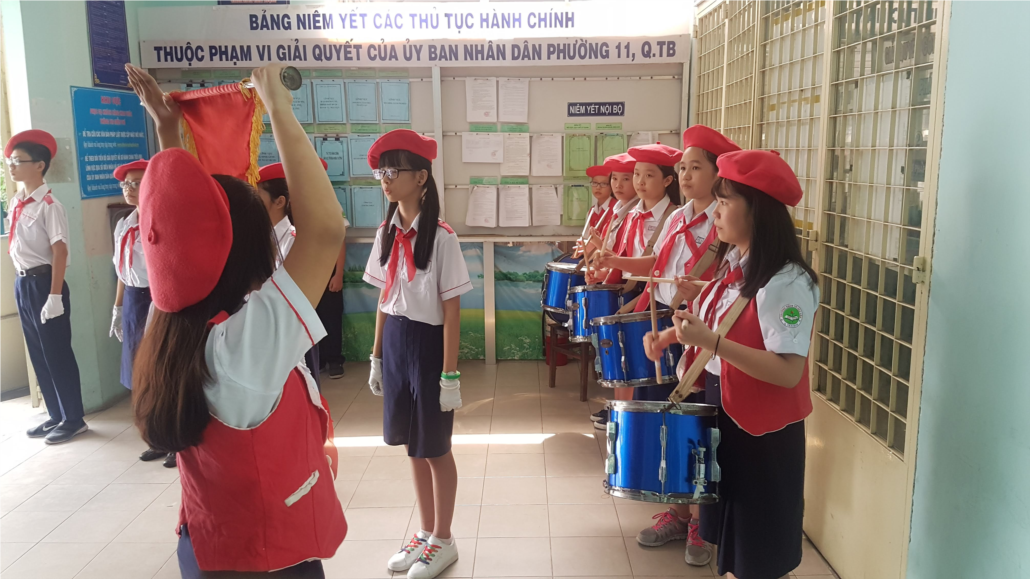 phân công giáo viên thuyết minh phần đánh trống khai trường; Chọn và tập huấn