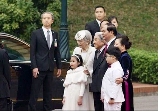 Như Khôi chụp ảnh cùng với Chủ tịch nước Trần Đại Quang và Nhà vua, Hoàng hậu Nhật Bản.